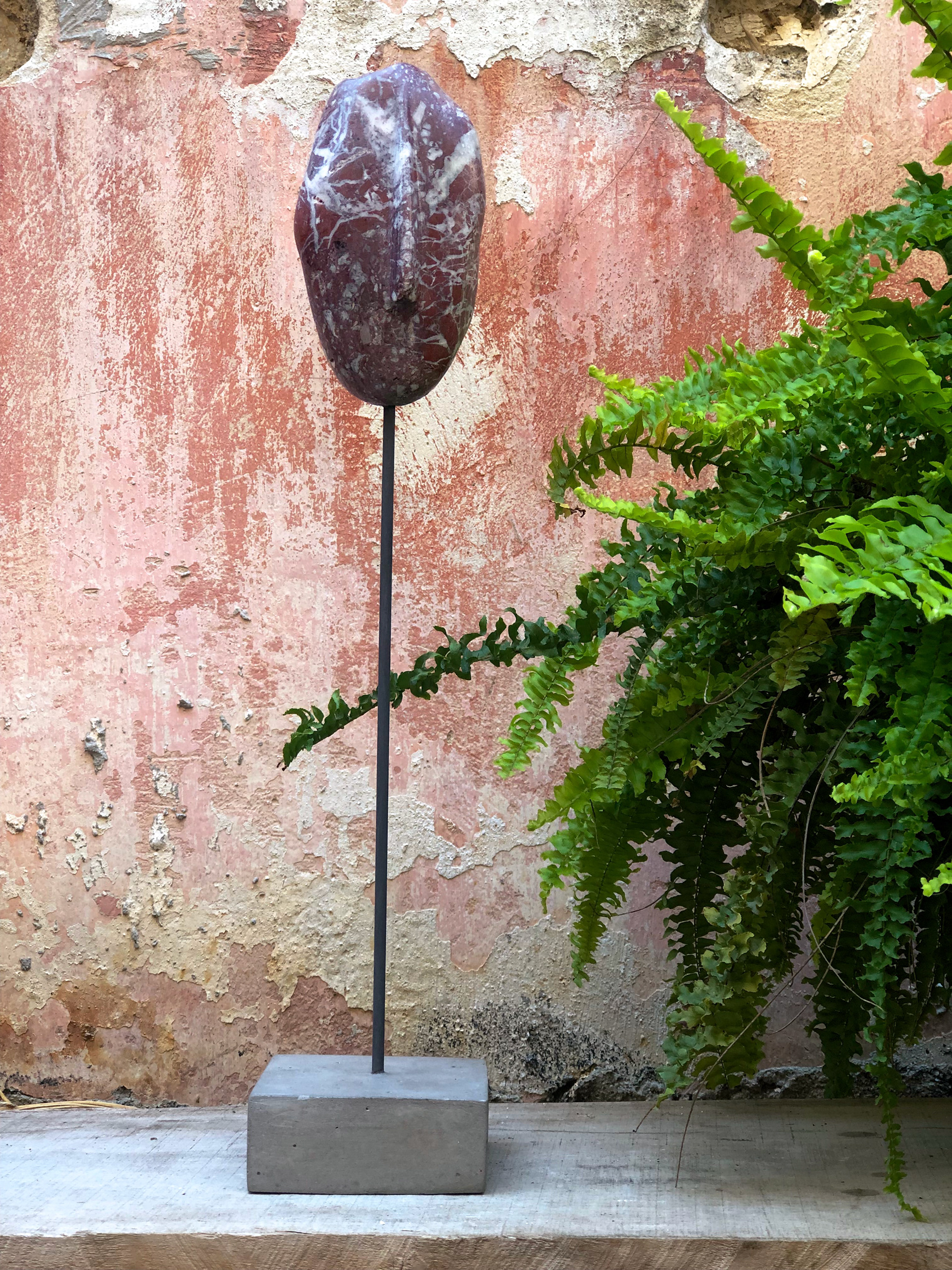 Sea stone on concrete stand Total Height: 46cm Stone: 8x14cm Stand: 9.5x9.5x3.5cm