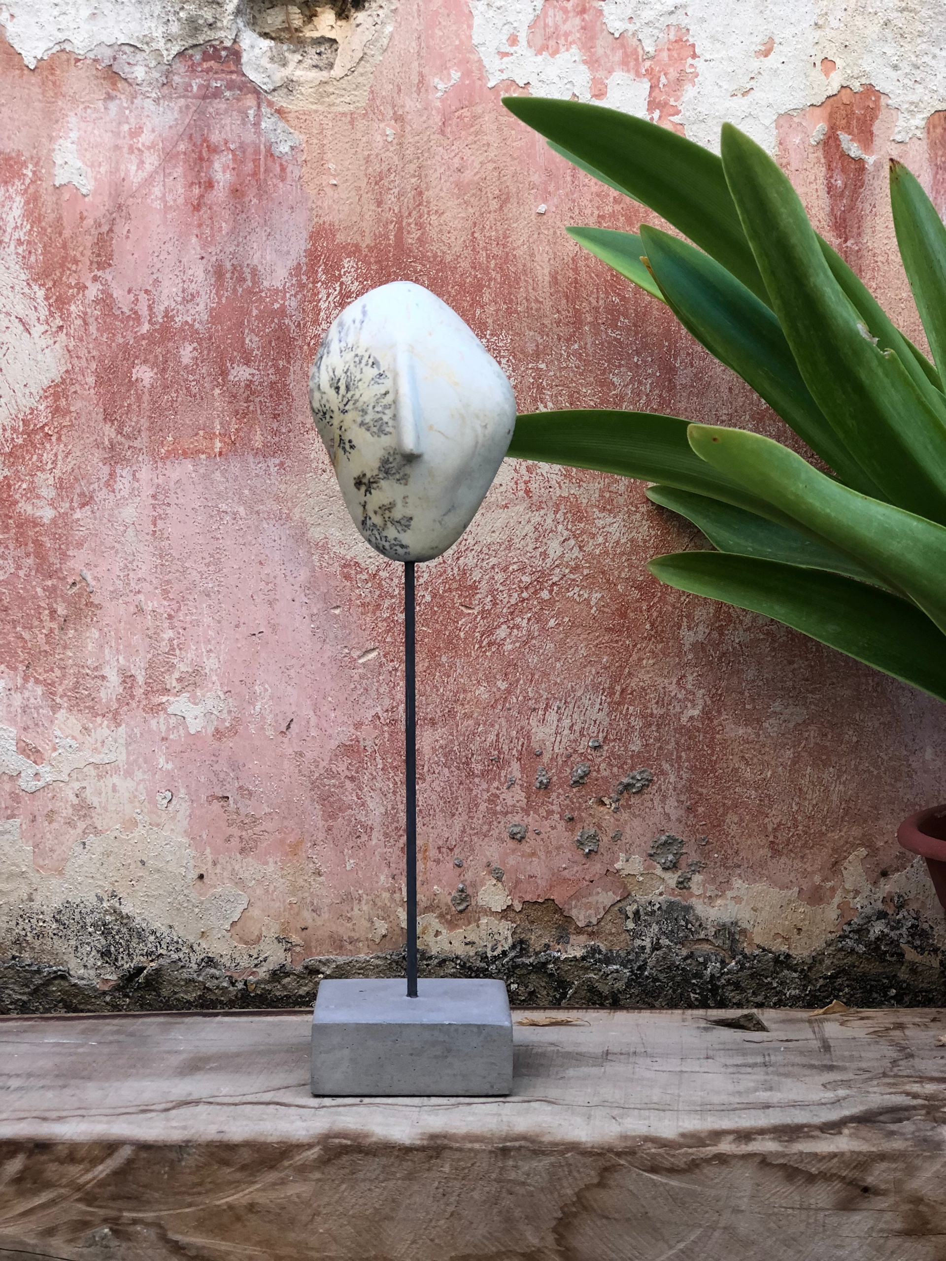 Sea stone on concrete stand Total Height: 32cm Stone: 10x12cm Stand: 10x10x4cm