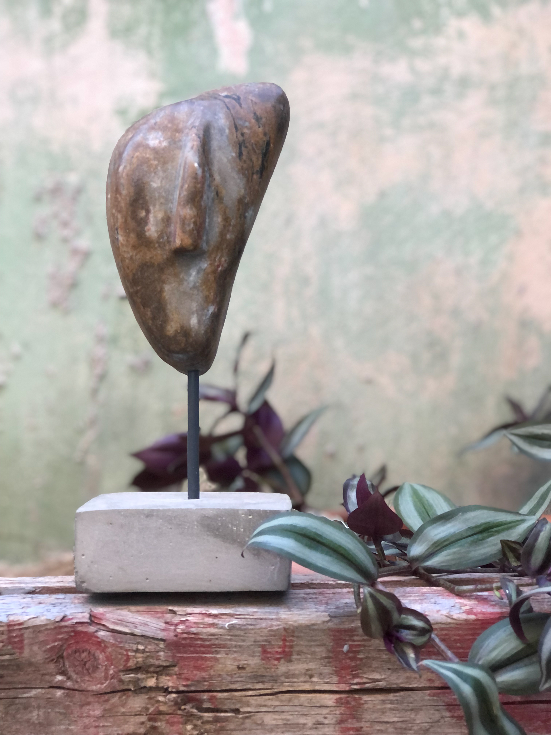 Sea stone on concrete stand Total Height: 26cm Stone: 10x14cm Stand: 10x10x3.5cm