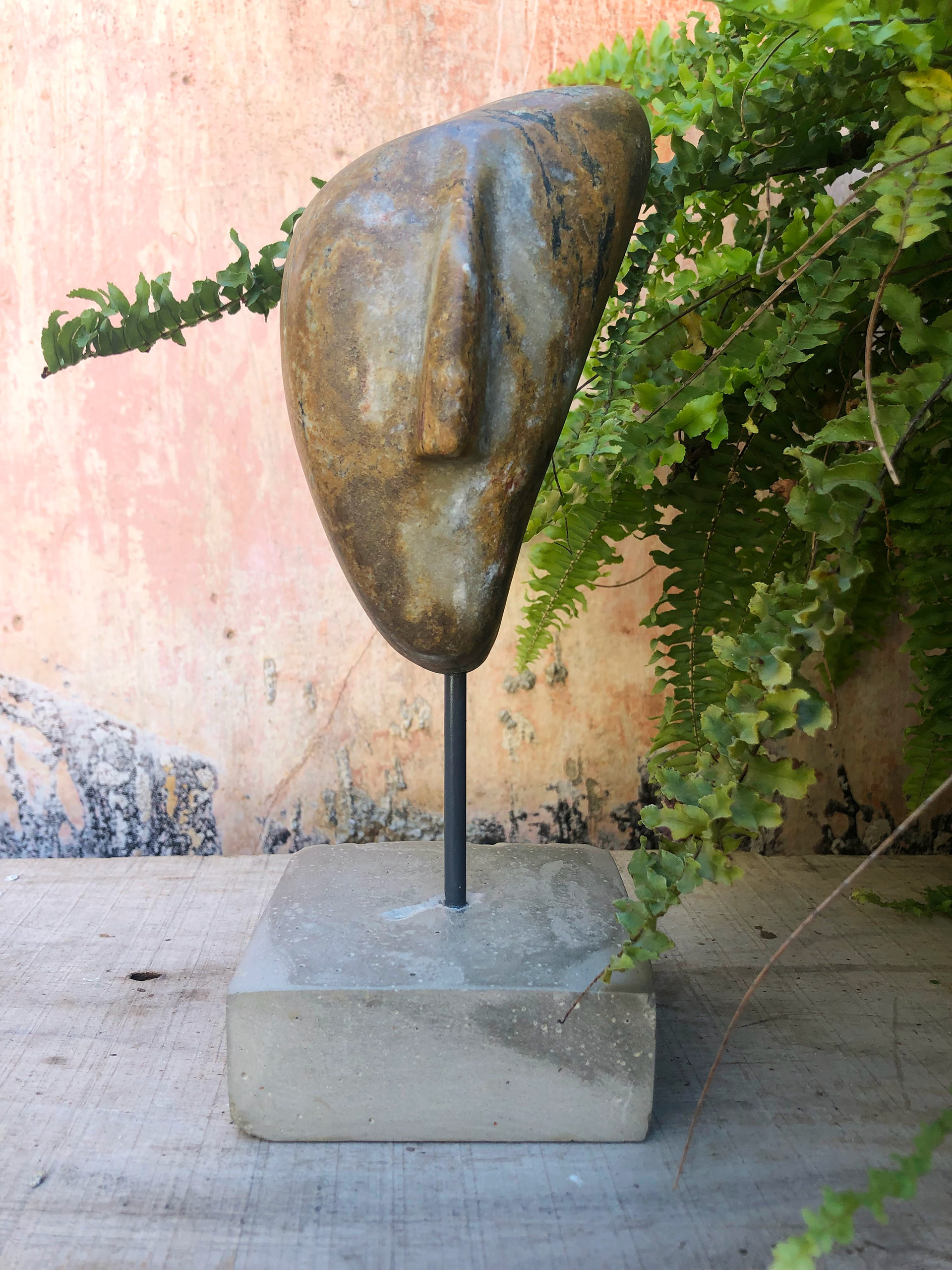 Sea Stone on Concrete Stand Total Height: 35cm Stone: 8x11cm Stand: 7.5x7.5x4cm