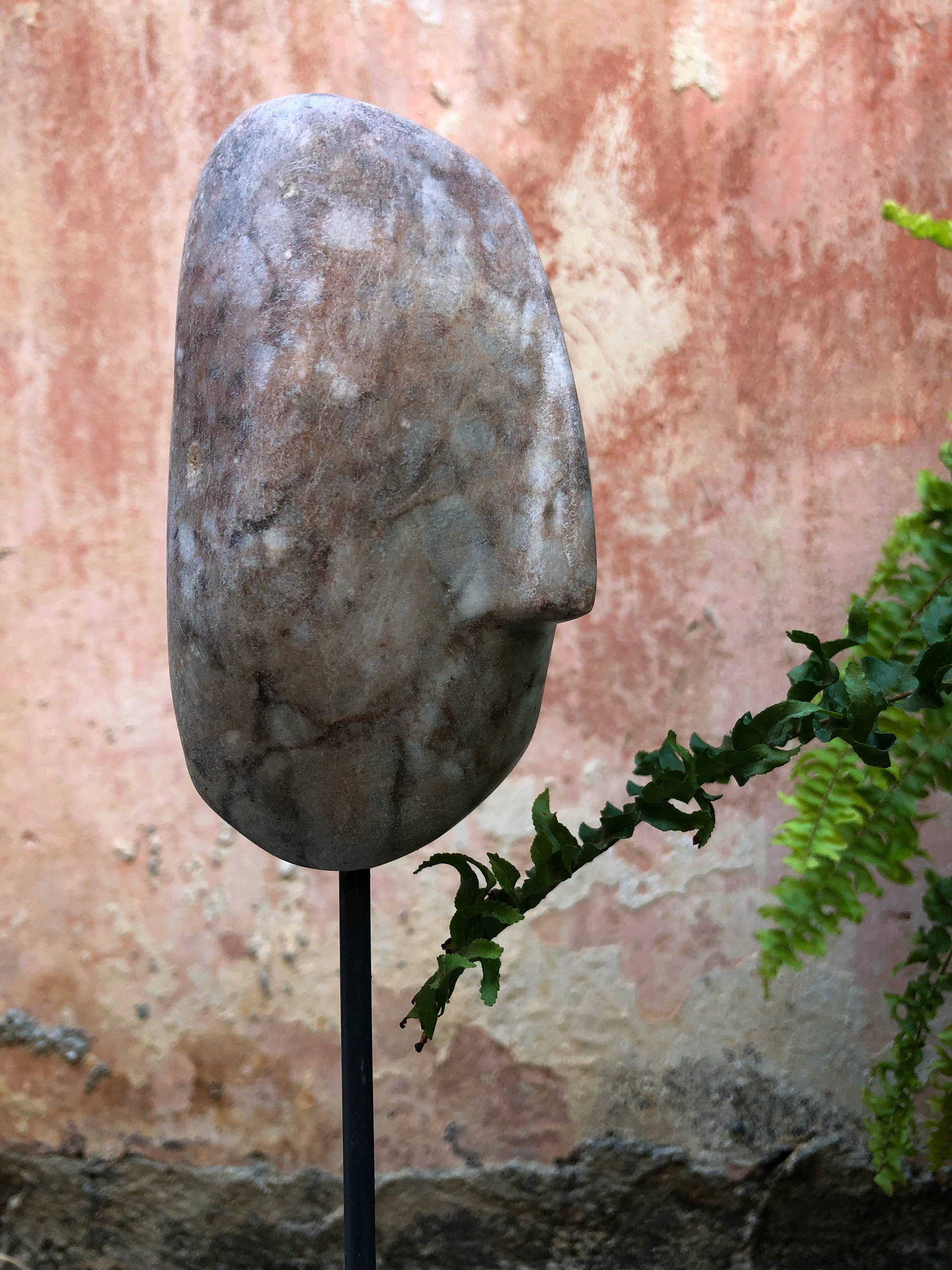 Sea stone on concrete stand Total Height: 46cm Stone: 8x14cm Stand: 9.5x9.5x3.5cm