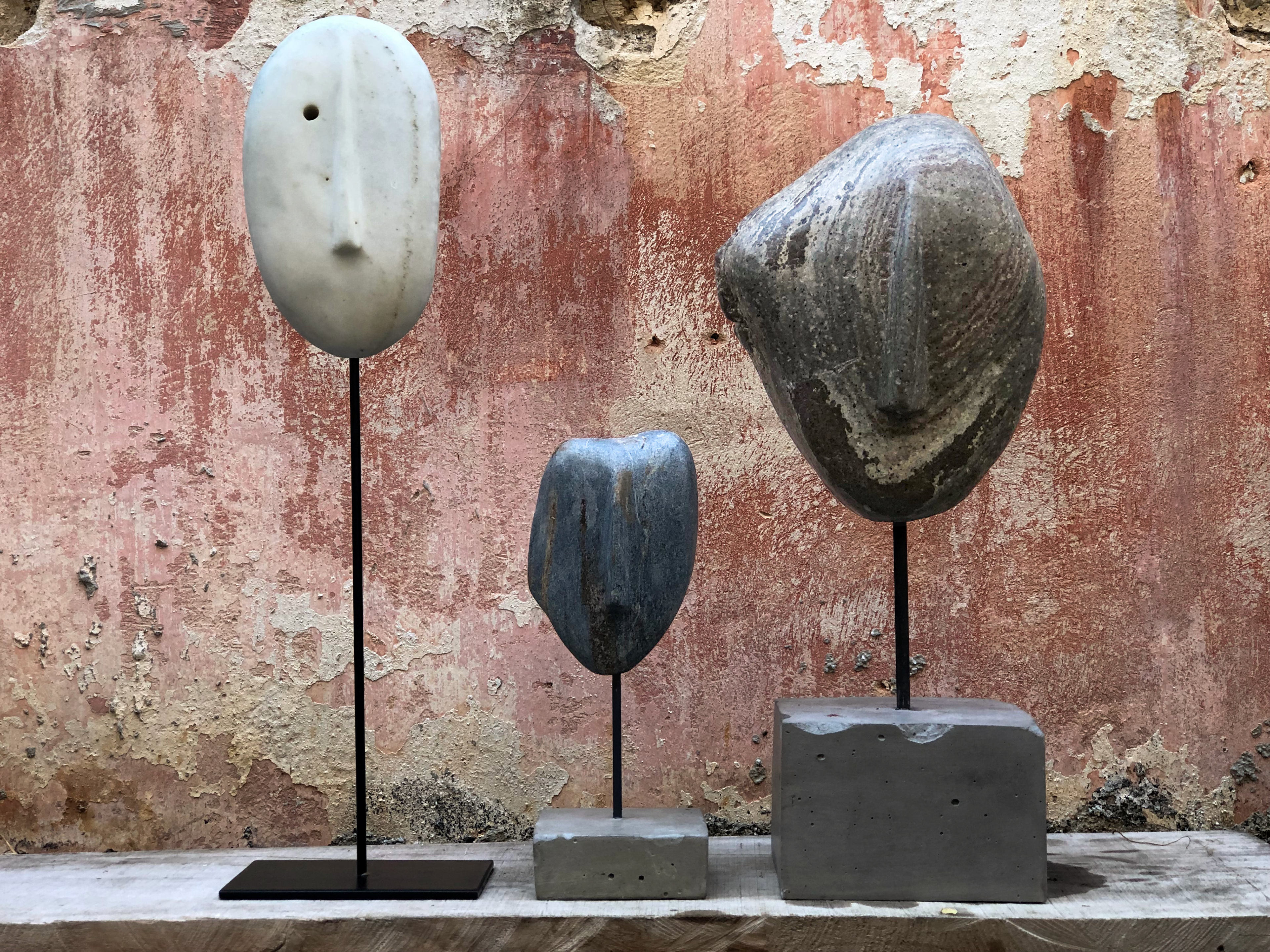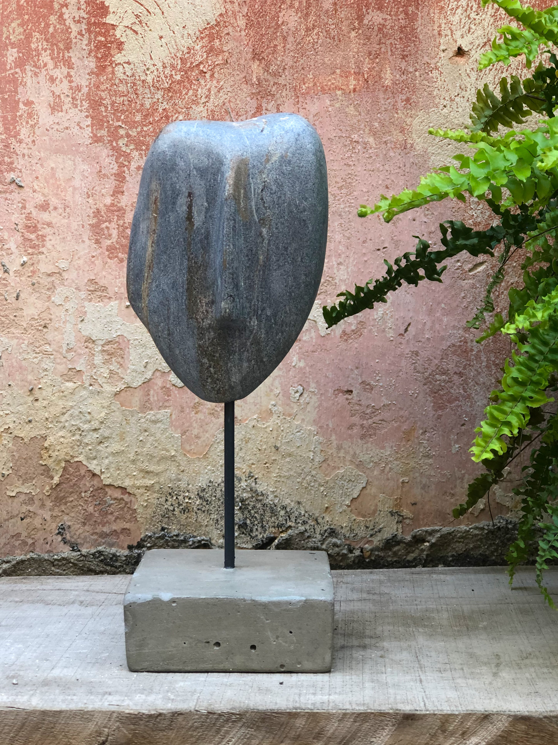 Sea stone on concrete stand Total Height: 46cm Stone: 8x14cm Stand: 9.5x9.5x3.5cm
