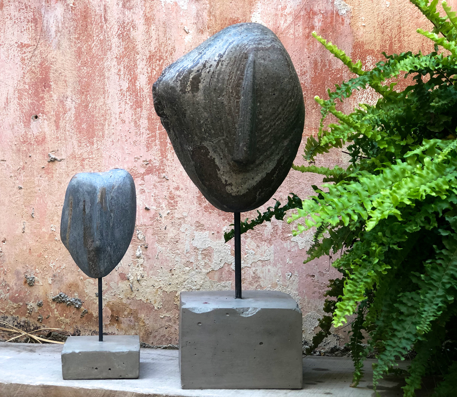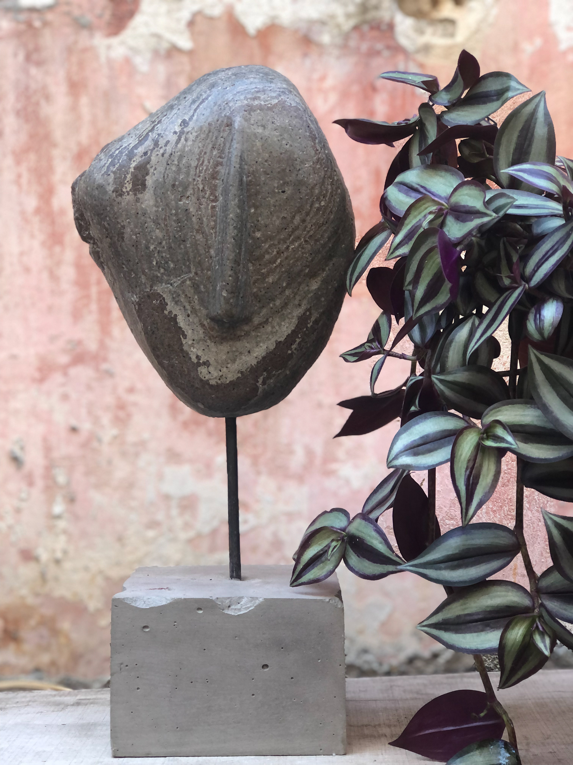 Sea Stone on Concrete Stand Total Height: 45cm Stone: 24x20cm Metal Stand: 14x14x8cm Concrete stand: 15x15x10cm